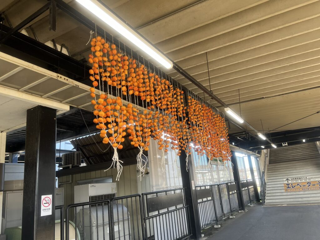 えっ、駅のホームに干し柿!?